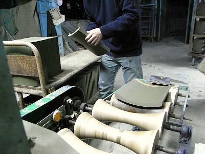 一枚、一枚金型に荒地を乗せての作業です。