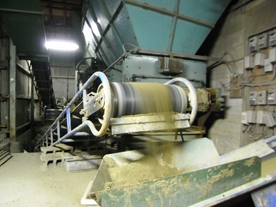 土をコンベアーに乗せて、土練機という機械まで運んでいきます。