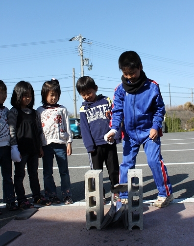 3月21日に産業文化センターで瓦割り体験が行われました。