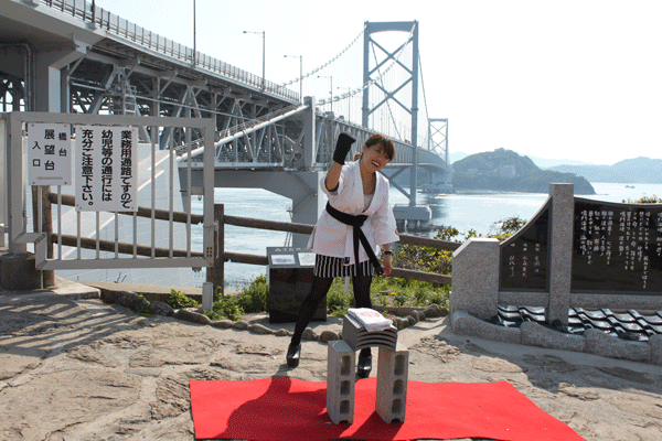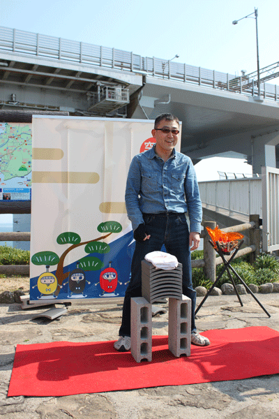 道の駅うずしおでの瓦割り体験の様子その2です。